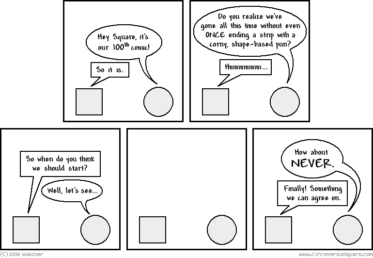 So strangely enough, whenevr I'm checking out a webcomic for the first time I often look at the 100th comic right off the bat just because. So if you're one of those people, which you totally are, be sure to check out my