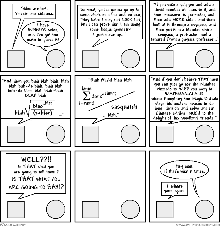 Everyone loves Humphrey the Magic Buffalo! One day I will make a shirt to hock on this website which will feature a glorious illustration of Square's rant. It will basically be a picture of a buffalo sitting on a stump while blowing into an abacus like a pan flute. The abacus will have some kind of radiation warning on it and watching Humphrey in delight will be Disney-style animals and three Chinese wise men. In the dirt will be a drawing of a solved long division problem.