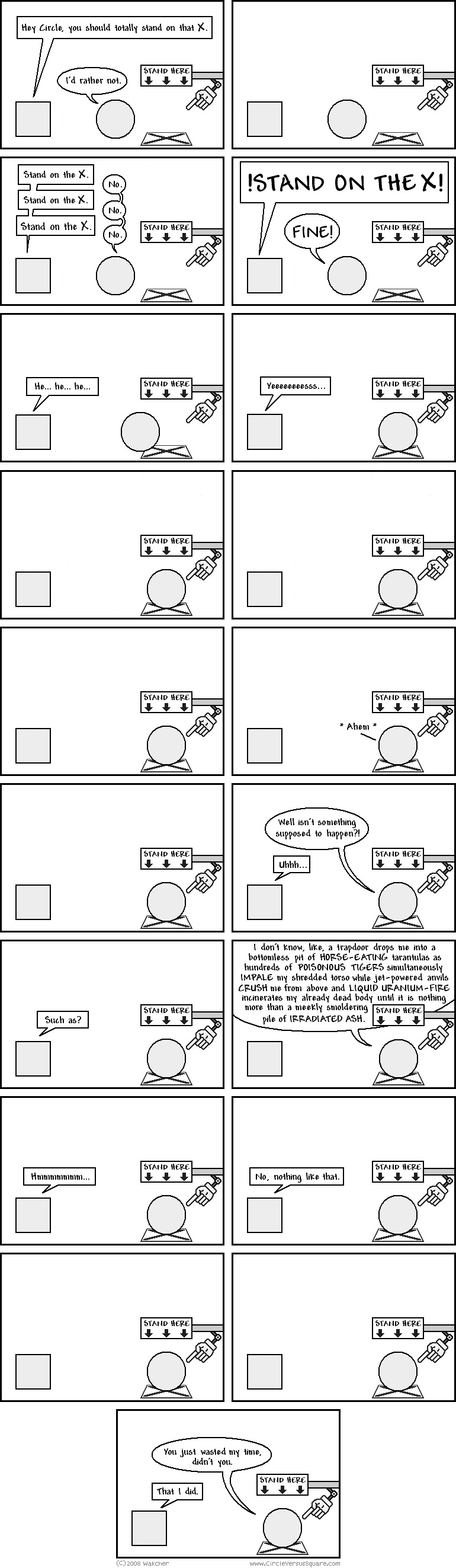 Road Runner and Coyote cartoons. Can't get enough of 'em! But I watched over a dozen or so and I couldn't find a good example of the Road Runner standing on an X. Funny, I remember it being so common, but guess it was just my imagination.