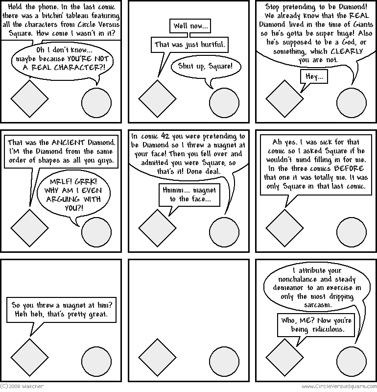 Just when you thought the question was settled, Diamond (or is it just Square pretending to be Diamond) makes his triumphant return! He's got his story so the conundrum continues on! If you're interested in seeing how this all began, which of course you should be, check out